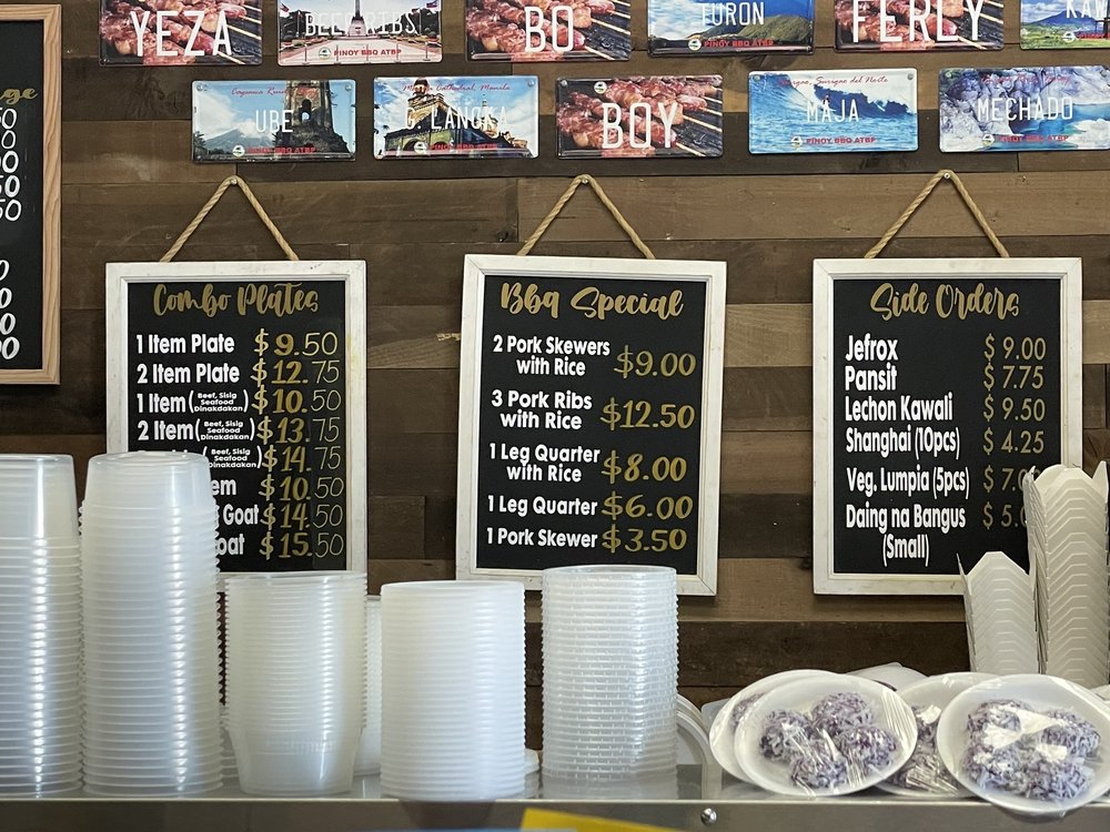 Pinoy BBQ ATBP offers a fusion of Filipino and New American cuisine with a focus on barbeque. Located in Milpitas, CA, this restaurant provides a wide range of dishes, from Pork BBQ skewers to Beef Kaldereta and Pork Adobo. Customers praise the generous portion sizes and flavorful offerings, like the Kare-Kare and Bistek. The cozy atmosphere and friendly staff create a welcoming dining experience. Reviews mention popular items such as the Pork BBQ Ribs with Rice and Chicken Adobo. Overall, Pinoy BBQ ATBP is a must-visit spot for those craving authentic Filipino flavors in a casual setting. Don't miss their delicious desserts like Banana Turon and Halo-Halo for a sweet ending to your meal.